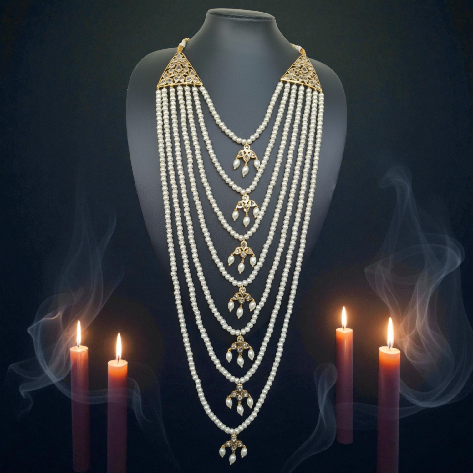 Crafted with intricate detailing, this necklace reflects fine artistry and timeless charm. Its regal multi-layered design makes it the perfect accessory to complement both traditional and modern outfits, adding a touch of grace and refinement.