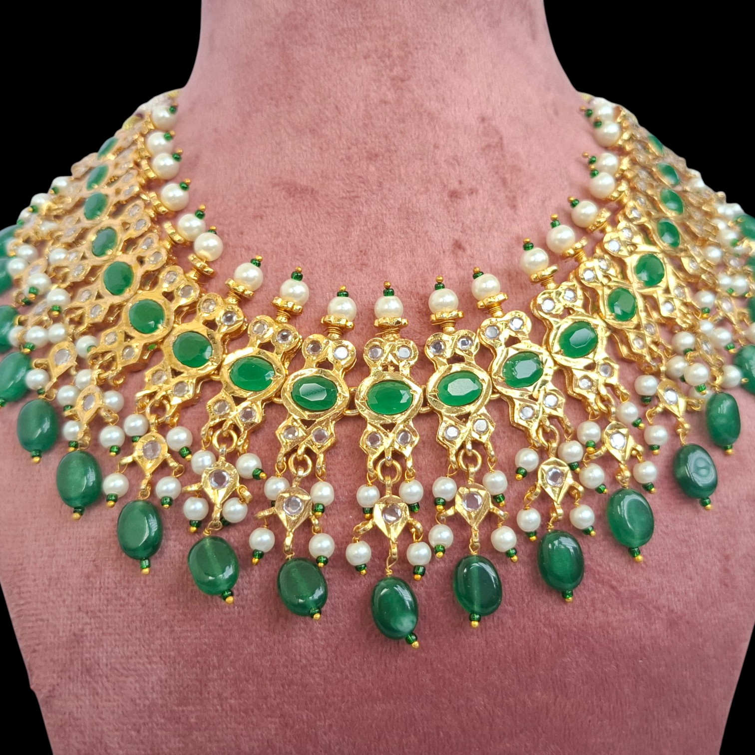 Our Hyderabadi jewelry is renowned for its fine craftsmanship and authentic appeal. Each piece is carefully handcrafted, with artisans dedicating days of effort to ensure exceptional quality and a true heritage look.